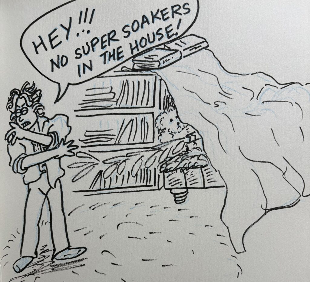 I mean, I know sometimes she does get up in the middle of the night because sometimes in the mornings she’s curled up in her little reading nook and not in her bed. Which is weird because she never has any books over there and the swag lamp isn’t on in the mornings, but then she kinda likes to make blanket forts in there and would defend said forts with her super-soakers if we didn’t insist that they stay out in the pool cabana so I don’t get blasted with cold water for trying to make her get up and go to school.