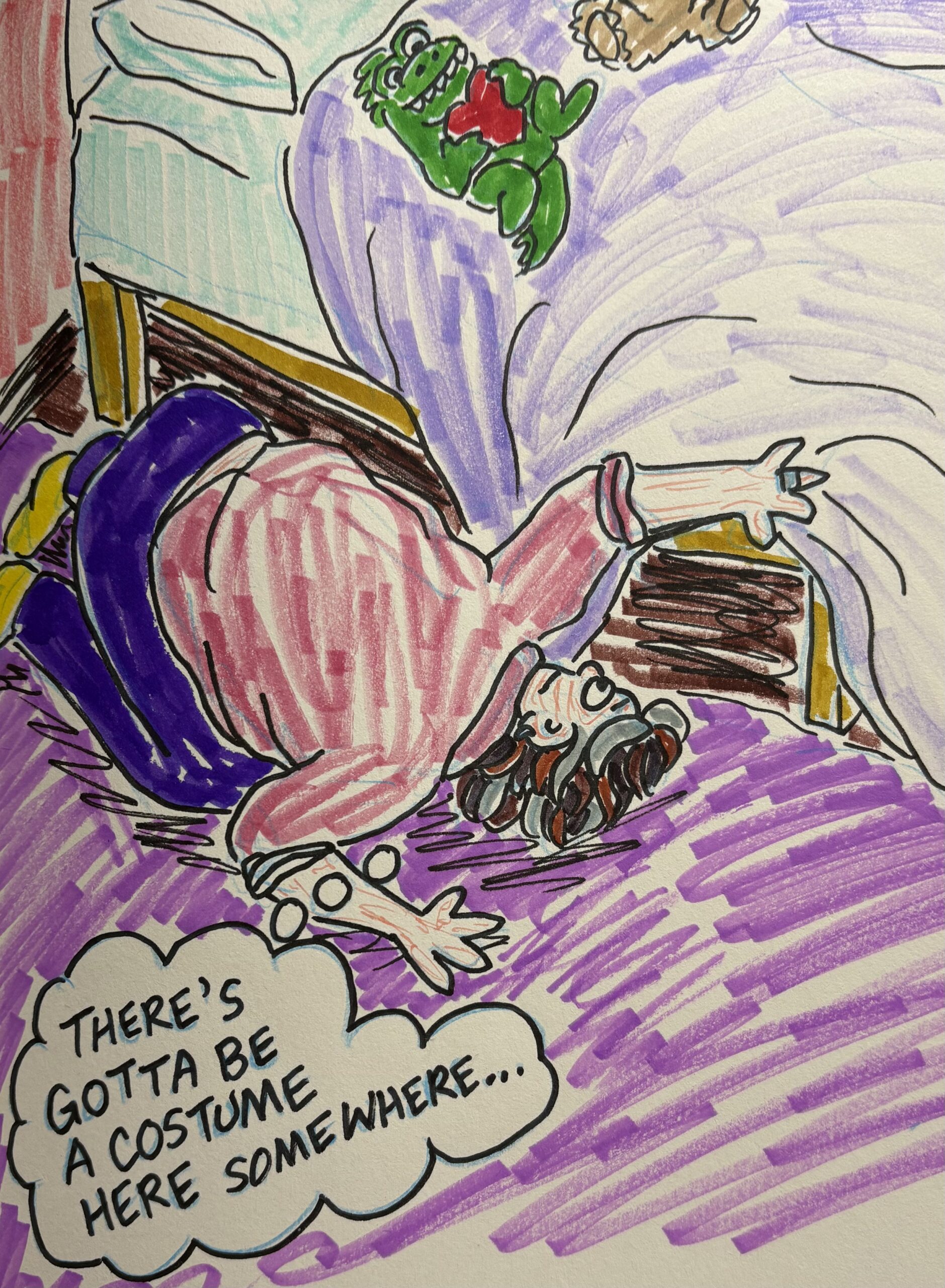 Ursula still hasn’t told Noah what her costume is and he’s going nuts trying to figure it out so he can coordinate his own costume with hers.