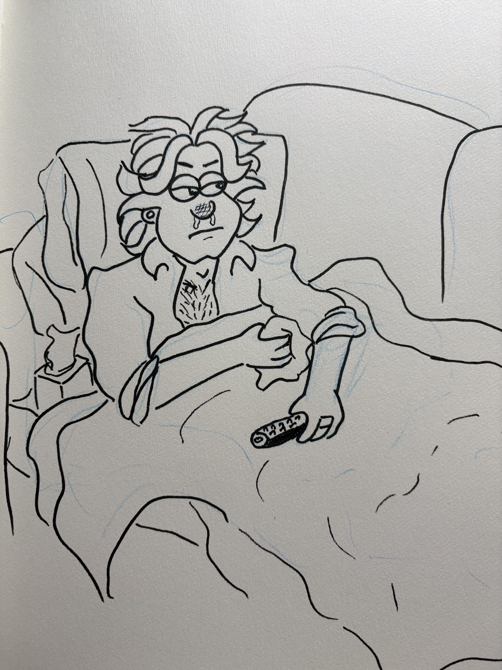 Noah has come down with the dreaded Man Cold, thanks to Ruth’s niece. Meanwhile Ruth’s gone to Agnes & Frank’s in an attempt to avoid catching it herself.